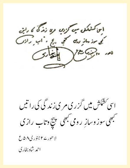 Menu Home About This Website Audio Video Patras Ke Mazameen (پطرس کے مضامین) Takhliqat e Patras (تخلیقات پطرس) Bokhari’s Other Writings Speeches Letters Patras – A Personality (پطرس ایک شخصیت) Professor A. S. Bokhari & Robert Frost Obituary & Tributes Books On Patras Articles & Features Patras Bokhari & Allama Iqbal (پطرس اور اقبال) Background to Pen Name “Patras” Biography Awards & Recognition Bokhari Snippets Reviews of Patras Bokhari Website Pictures galleries Contact Us Patras 's Poetry Printer-friendly version